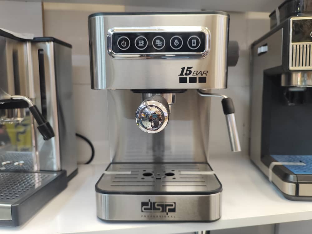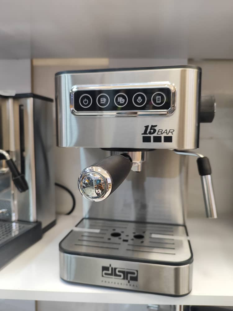 کنترل های صفحه لمسی, محفظه استیل ضد زنگ, می تواند به راحتی قهوه یا بخار درست کند, مخزن آب شفاف 1.8 لیتری قابل جدا شدن, 5 دکمه برای روشن/خاموش، یک فنجان، دو فنجان، عملکرد بخار و تنظیم, با شیر اطمینان می تواند فشار را به طور خودکار آزاد کند, دیگ آلیاژ آلومینیوم دایکاست, نگهدارنده فیلتر آلیاژ آلومینیوم با فیلتر دوگانه ضد زنگ برای بهبود کیفیت قهوه متصل شده است, ایمن و قابل اعتماد، با دستگاه محافظت شده از گرمای بیش از حد و فشار بیش از حد, نازل کف و سینی چکه گیر قابل جدا شدن برای تمیز کردن آسان, صفحه گرم کننده فنجان ضد زنگ بادوام برای پیش گرم کردن فنجان های قهوه, سینی چکه قابل جدا شدن با نشانگر سطح آب