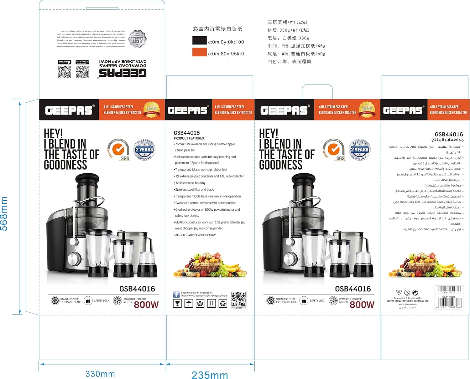 آبمیوه گیری جیپاس مدل GSB44016 ظرفیت ۰.۸ لیتر ۴ کاره